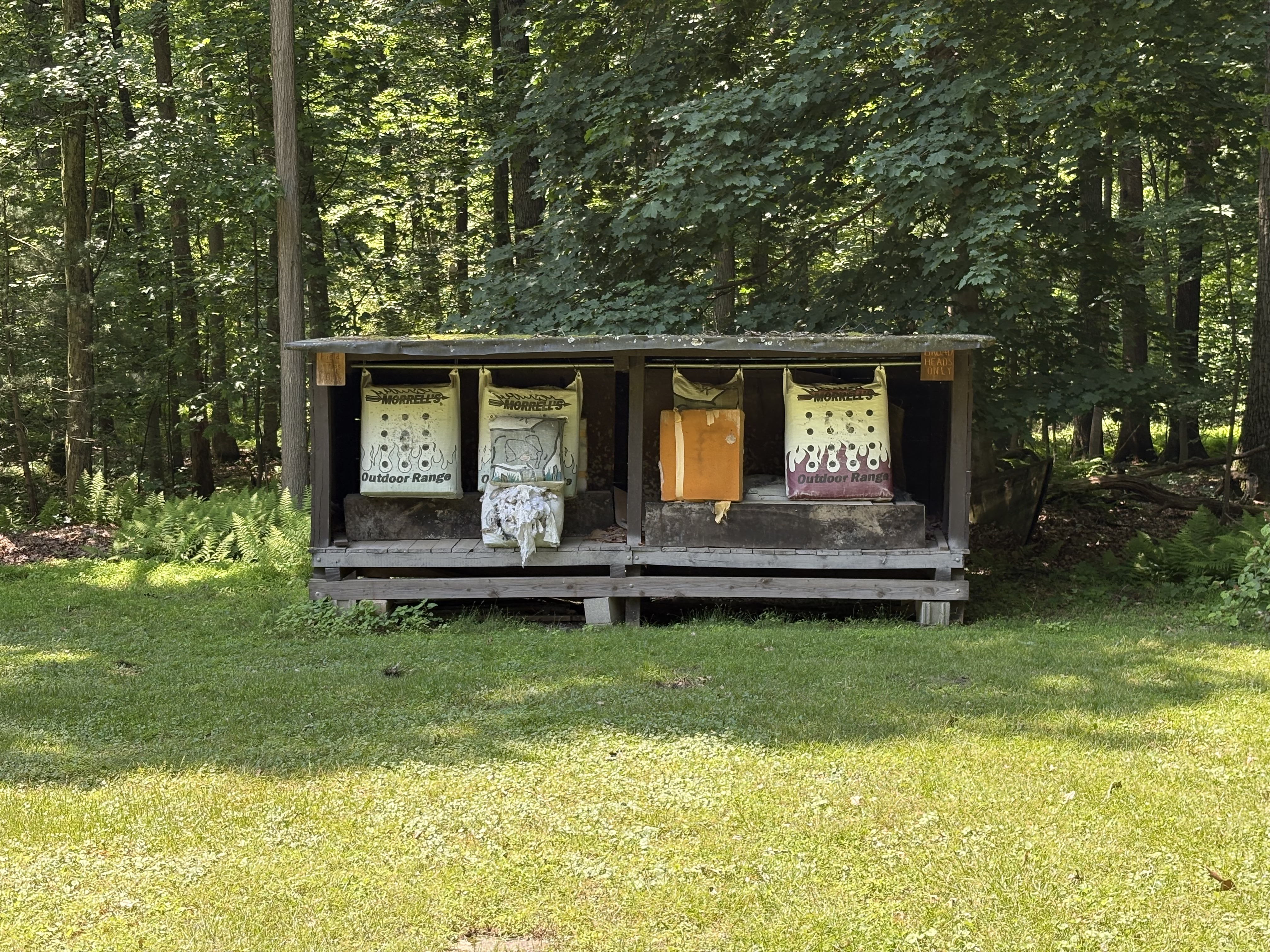 The rifle range has target stands at ranges of 25 yards, 50 yards, 100 yards. No shotguns other than single slug projectiles allowed on the rifle range. Shotguns to be patterned on the trap range.